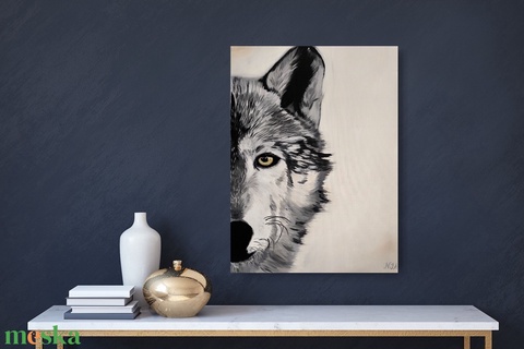 - Anyag/Összetevő vászon, lakk, akasztó, olajfesték, akrilfesték