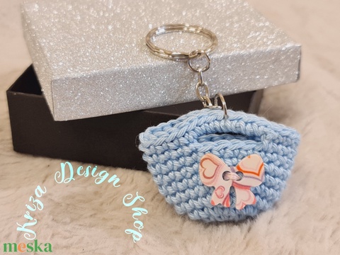 Kézműves horgolt kulcstartó - Shopping bag (Masnis gomb dekorációval - 2026.)