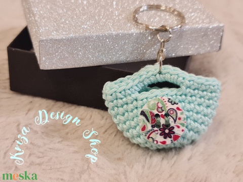 Kézműves horgolt kulcstartó - Shopping bag (Színes fa gomb dekorációval - 2026.)