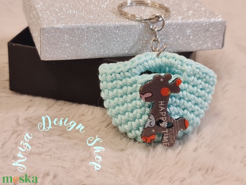 Kézműves horgolt kulcstartó - Shopping bag (Zsiráfos gomb dekorációval - 2026.)