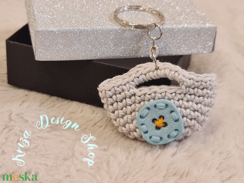 Kézműves horgolt kulcstartó - Shopping bag (Kocka alakú gomb dekorációval - 2026.)
