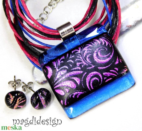 Pink-fekete tündérkert üvegékszer szett nyaklánc fülbevaló Anyák napjára, ballagásra, születésnapra, névnapra