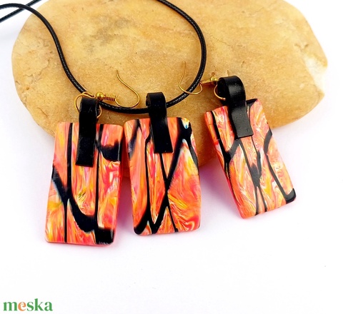 Narancs-fekete nyaklánc fülbevalókkal