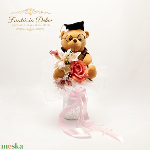 🎓 Ballagási csokor macival – romantikus, kézzel készített ajándék 🎓