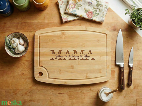 Gravírozott nagyméretű vágódeszka - anyák napi ajándék nagymamáknak, anyukáknak
