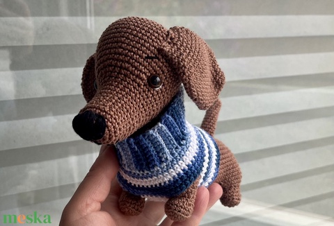 Horgolt pulcsis tacskó