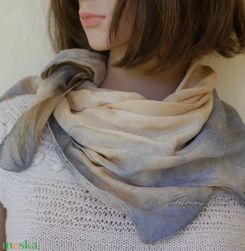 PONGE KENDŐ - batikolt 100% hernyóselyem kendő / mogyoró, szürke