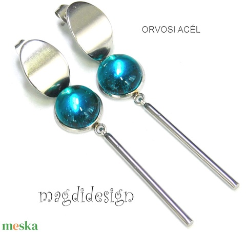 Türkiz üvegékszer lógós nemesacél fülbevaló