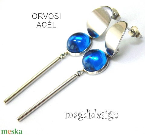 Égszínkék üvegékszer lógós nemesacél fülbevaló