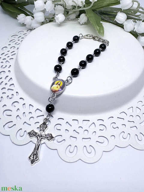 Autós rózsafüzér szentképpel – Több változatban fekete