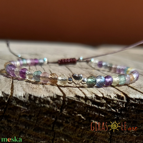 - Anyag/Összetevő fluorit, sterlingezüst, damilos poliészter zsinór