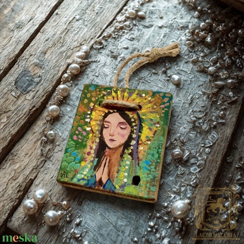 Imádkozó Mária - Rusztikus Festett Fa, Dekoráció - Falra akasztható - Ajándék ötlet, Angyal, Szent, nő