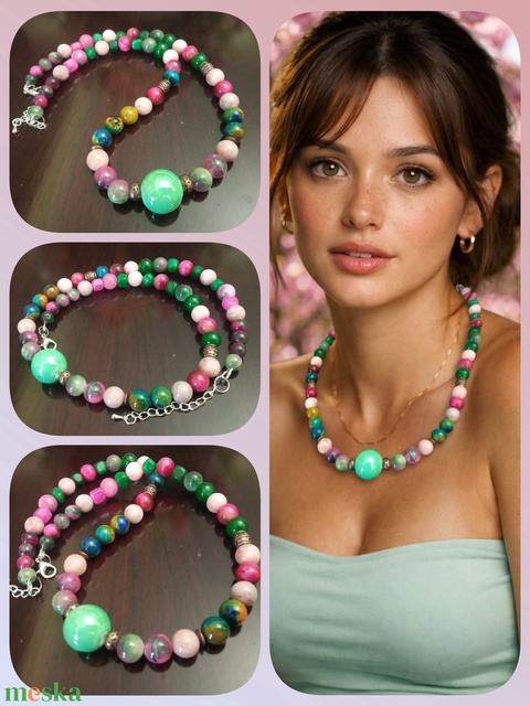 - Anyag/Összetevő féldragakő, damil , kapocs, gyöngy
