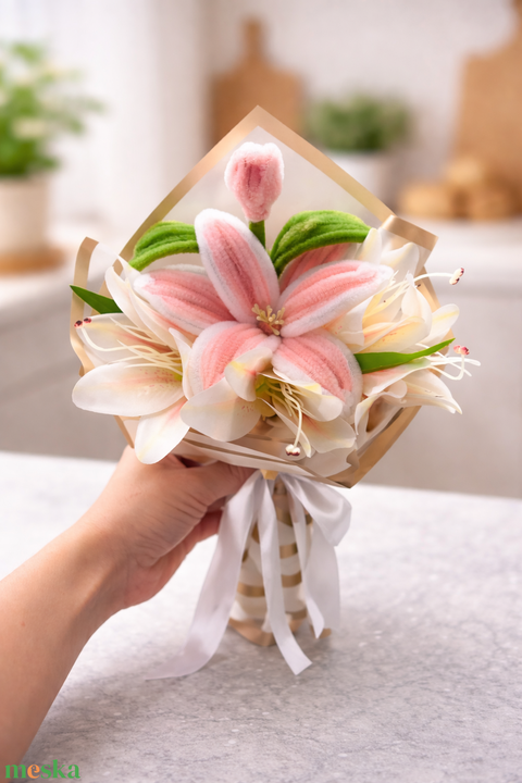 Zsenília virágos liliom csokor - kézműves örök csokor, ajándék