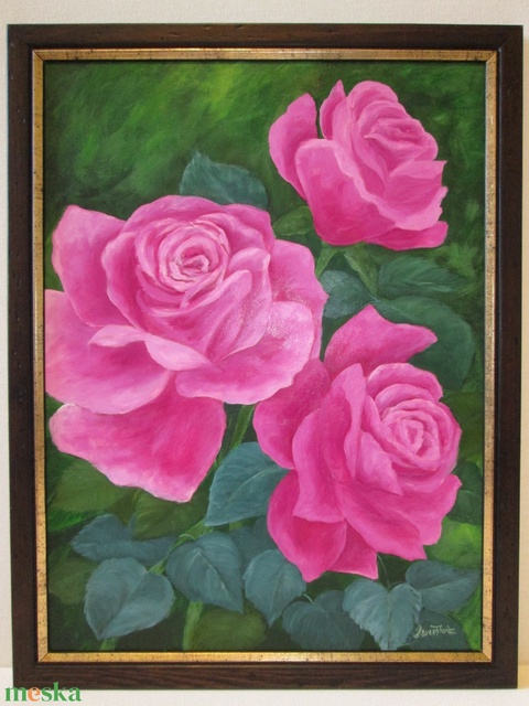Rózsaszín álom , Rózsák, Olajfestmény keretben