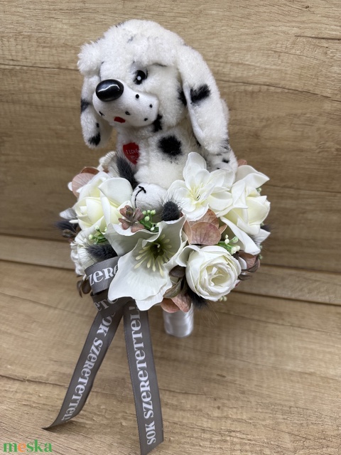 - Anyag/Összetevő selyemvirág, plüsskutyus