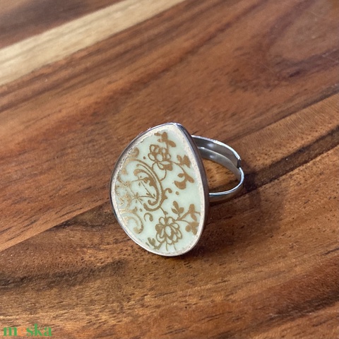 Francia mentett porcelán darabok - virágos nemesacél gyűrű, állítható