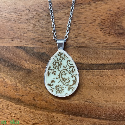 Francia mentett porcelán darabok - virágos nyaklánc - nemesacél csepp medálos
