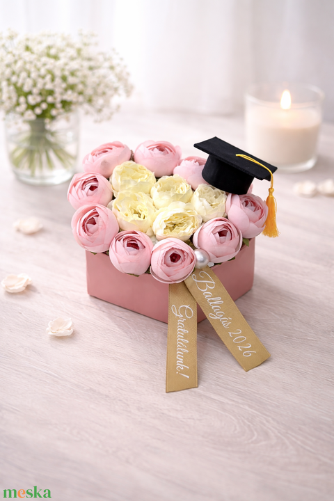 Szív alakú nagy virágbox ballagásra, diplomaosztóra