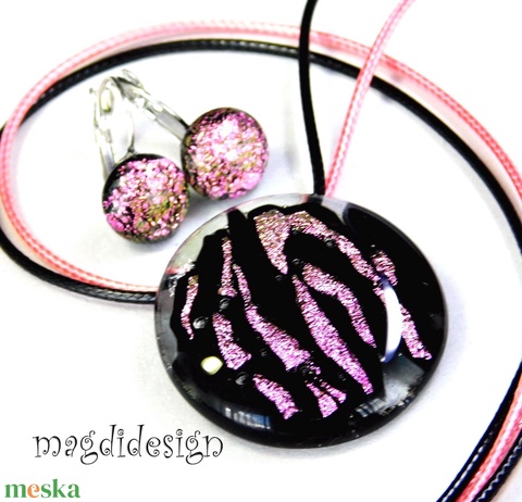 MAXI Rózsaszín fekete üvegékszer szett nyaklánc kapcsos fülbevaló Anyák napjára, ballagásra, születésnapra, névnapra