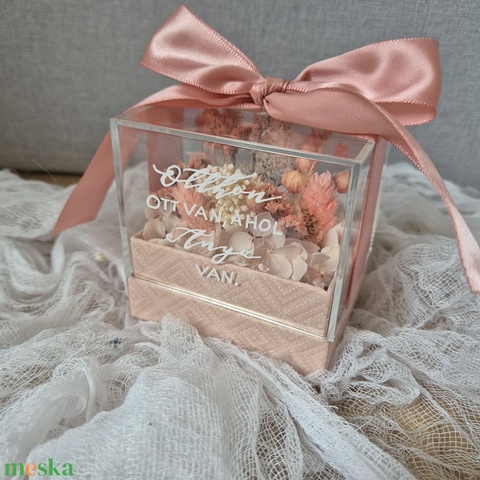 Szárazvirág virágbox, plexiboz, virágdoboz, Anyák napjára, szülőköszöntőre