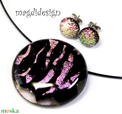 MAXI Rózsaszín fekete üvegékszer szett nyaklánc stiftes fülbevaló Anyák napjára, ballagásra, születésnapra, névnapra