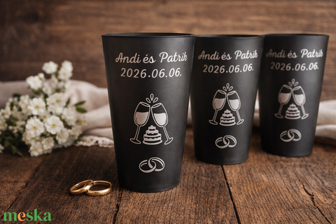 Repohár a pár nevével dátummal képpel, köszönőajándék rendezvénypohár