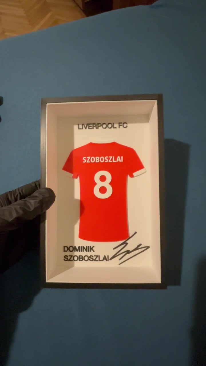 Szoboszlai Dominik Liverpool FC 8-as mezkeretes 3D nyomtatott falidísz – egyedi ajándék