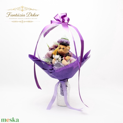 🎓 Ballagási macis ajándék – lufiban, lila eleganciában