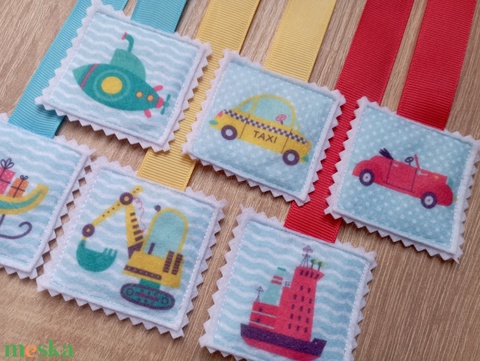 Színes szalagos könyvjelzők 6db járműves 9