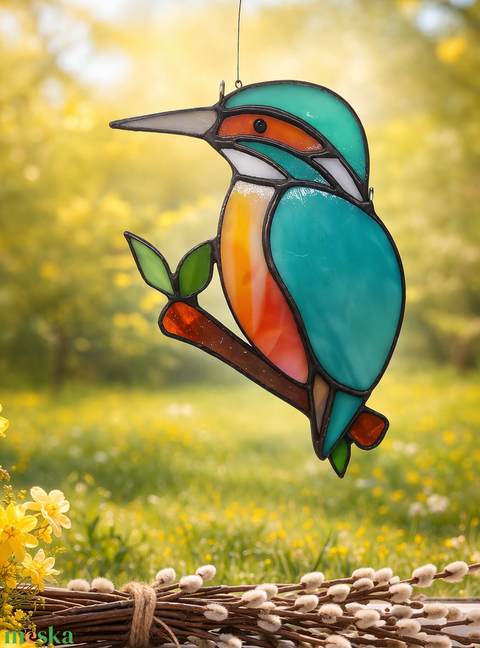 "JÉGMADÁR faágon" TIFFANY napfogó/ablakdísz a természet szerelmeseinek