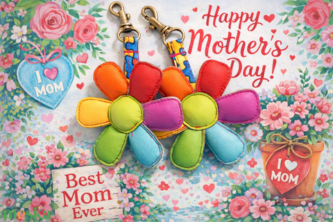 Virágos kulcstartó táska dísz Anyák napjára