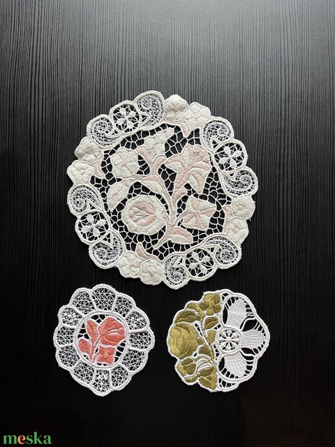 Kalocsai mintás riselt terítők - Szett - 1+2 (1 db - Ø19 cm és 2 db - 10 x 10cm)
