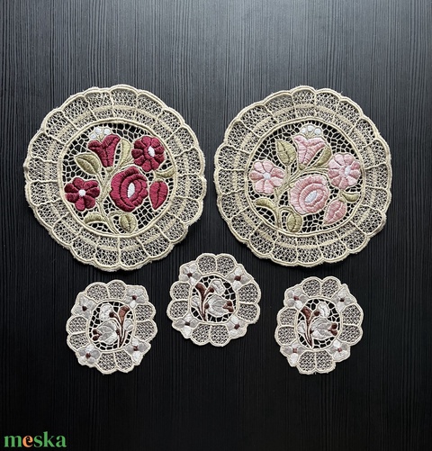 Kalocsai mintás riselt terítők - Szett - 2+3 (2 db - 20x19,5 cm és 3 db - 10 x 10cm)