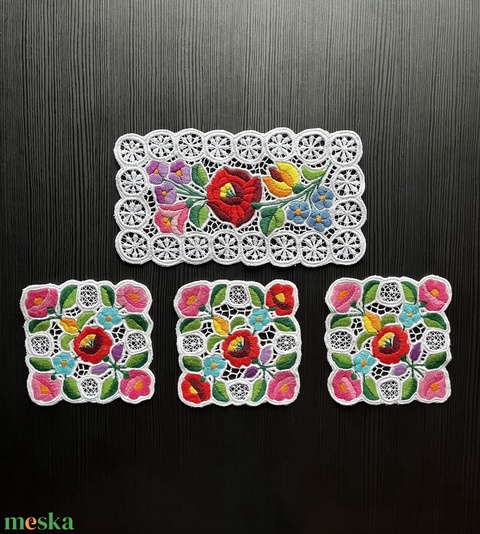 Kalocsai mintás riselt terítők - Szett - 1+3 (1 db - 21,5 x 11,5cm és 3 db - 11 x 11cm)