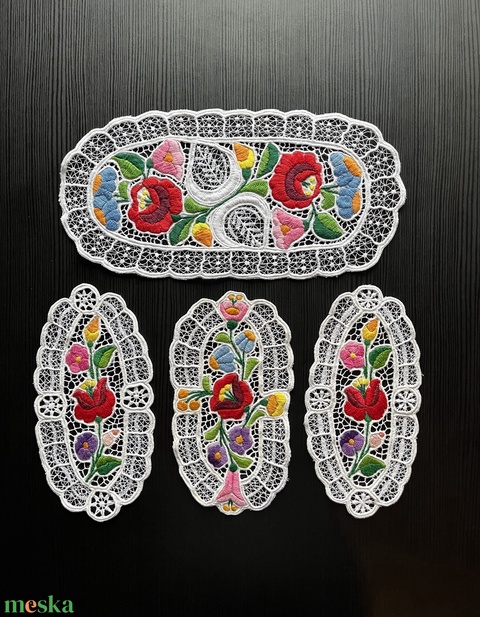 Kalocsai mintás riselt terítők - Szett - 1+3 (1 db - 29 x 14,5cm és 3 db - 20 x 10cm)