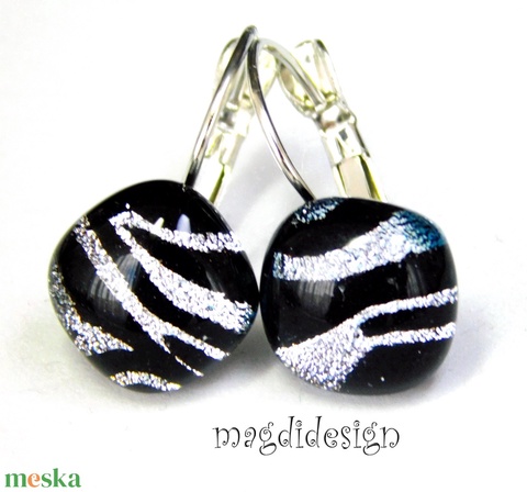 EXKLUZÍV Fekete ezüst zebra üvegékszer kapcsos fülbevaló - Anyák napjára, ballgásra