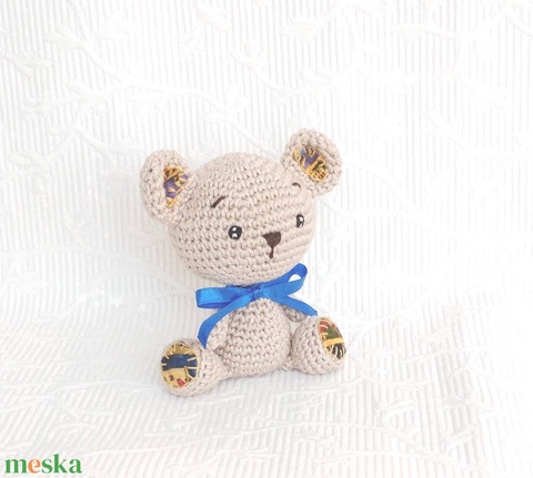 Maci - színes talpakkal- kék szalogos - marokállat - horgolt figura