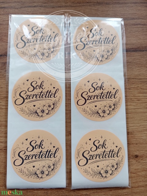 Sok Szeretettel” kerek matrica (5 cm) – 20 db.