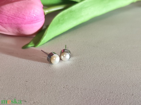 Igazgyöngy ragyogás – Nemesacél fülbevaló édesvízi tenyésztett gyönggyel
