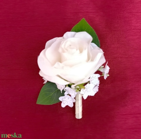 Vőlegény/ Tanú kitűző fehér selyemrózsás