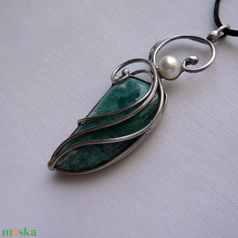 A medál tiffany technikával készült páva kagyló és ólommentes, ezüsttartalmú ón felhasználásával. A díszítés szintén saját készítésű, nem tartalmaz gyári elemeket.A fémrészt óezüstre patináztam és lelakkoztam, hogy sokáig szép maradjon.