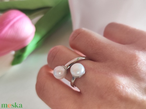 Klasszikus Elegancia: Antikolt Ezüst Állítható Gyűrű Édesvízi Gyöngyökkel