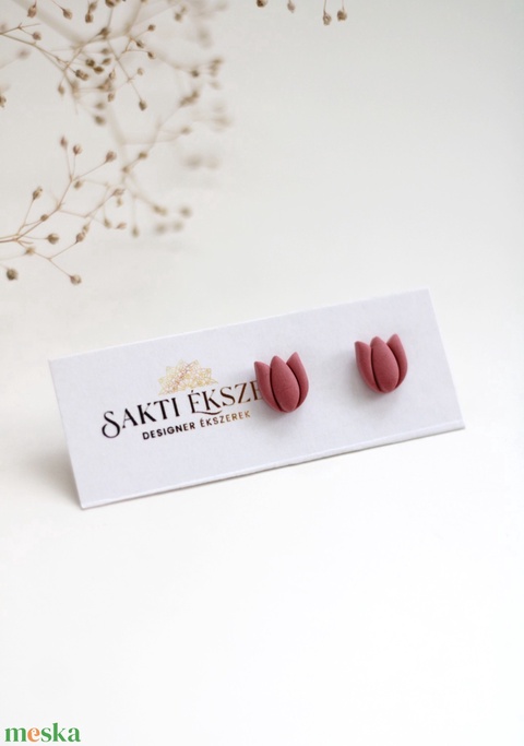 Rózsaszín tulipán gomb fülbevaló