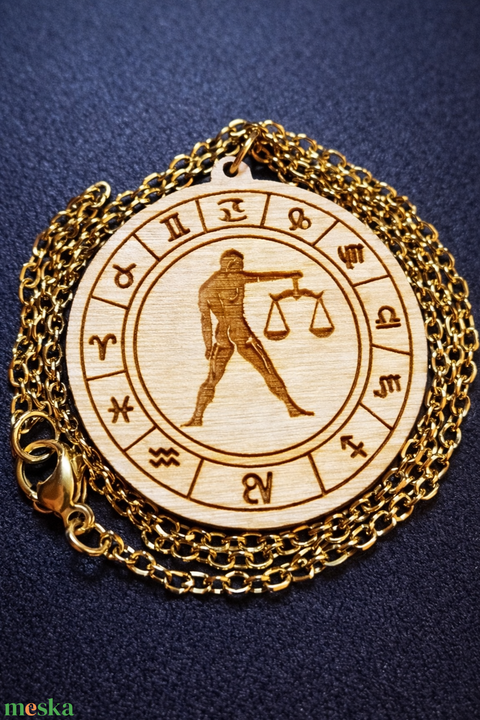 ékszer, nyaklánc, medálos nyaklánc, horoszkop, gravírozott, fa, zodiák, csillagjegy, ajándék, születésnap, női, férfi, mérleg, egyedi, szerencsehozó, napi, anyák, misztikus, spirituális, kézműves