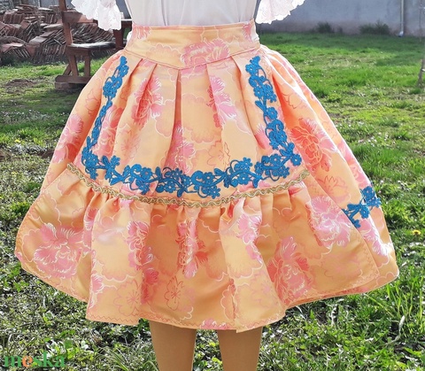 Sárközi brokát selyem szoknya köténnyel kislányoknak