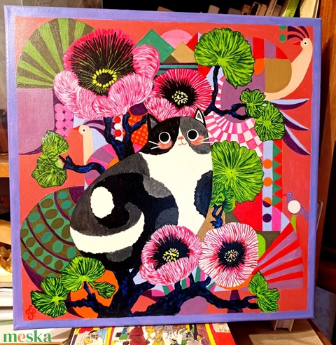 Cica Macska Cicó festmény: Színpompás dorombolás