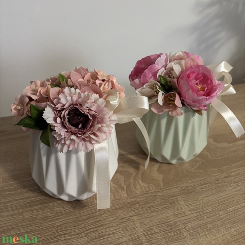 - Anyag/Összetevő kerámia kaspó, élethű selyem virágok