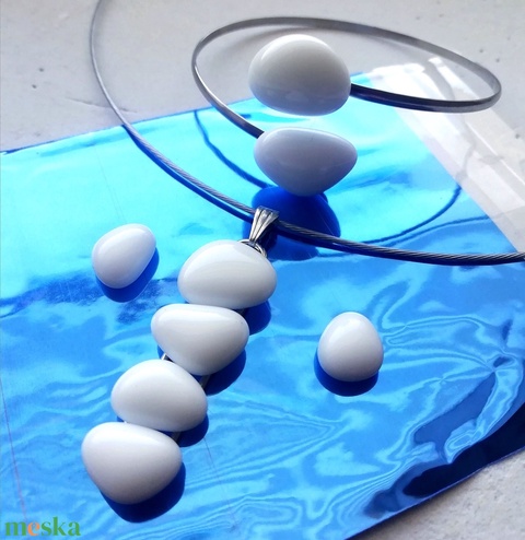 AKCIÓ! Fehér kavicsok nemesacél üvegékszer szett.
