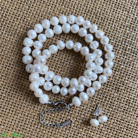 Édesvízi tenyésztettgyöngy - szett - nyaklánc/fülbevaló - 51cm + 6cm lánchosszabbító